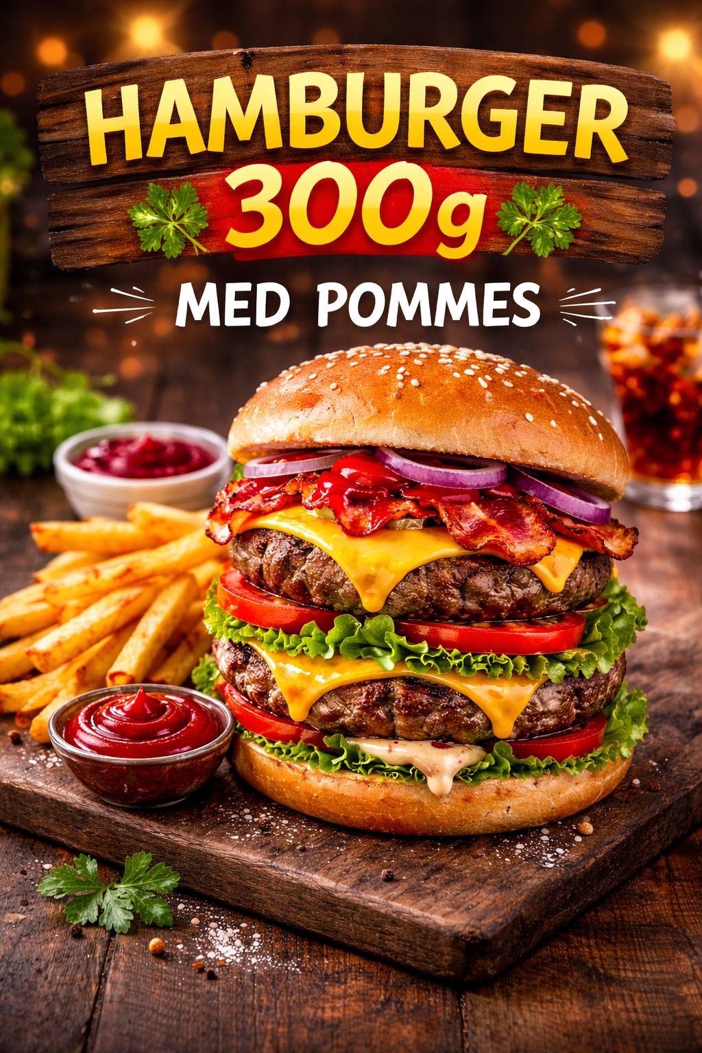 Dressing, sallad, lök, tomat, ketchup med bacon och ost